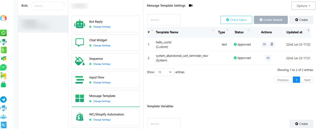 - Go to Manytalks Dashboard and navigate to the Bot manager section.